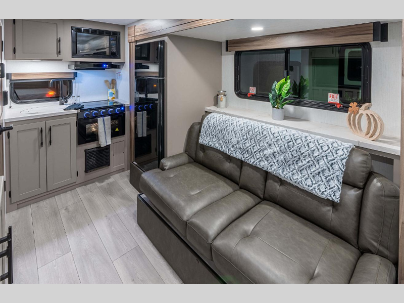 Sleeps 5 Slides 1 Length 22 ft 1 in Ext Width 7 ft 6 in Ext Height 10 ft 5 in Int Height 6 ft 6 in Hitch Weight 550 lbs GVWR 4800 lbs Dry Weight 4100 lbs Cargo Capacity 700 lbs Fresh Water Capacity 36 gals Grey Water Capacity 32 gals Black Water Capacity 32 gals Tire Size 15" Number Of Bunks 2 Available Beds RV Queen Refrigerator Type 12V Refrigerator Size 8 cu ft Cooktop Burners 3 Shower Size 27" X 27" Number of Awnings 1 Axle Weight 3550 lbs LP Tank Capacity 20 lbs Water Heater Type Tankless AC BTU 13500 btu Awning Info 14' Power with LED Light Strip Axle Count 1 Number of LP Tanks 1 Shower Type Neo-Angled Similar Floorplans