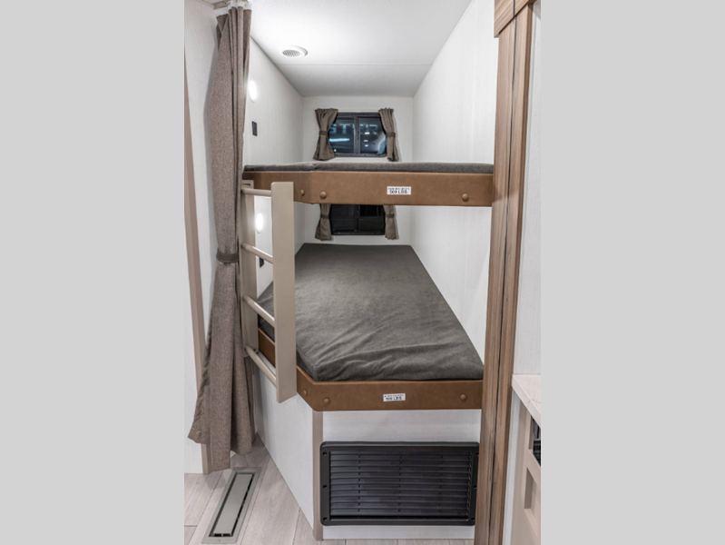Sleeps 5 Slides 2 Length 30 ft Ext Width 8 ft Ext Height 11 ft 4 in Int Height 6 ft 10 in Interior Color Mink, Spice Film, Uni Sandgrau Hitch Weight 840 lbs GVWR 8800 lbs Dry Weight 7070 lbs Cargo Capacity 1730 lbs Fresh Water Capacity 45 gals Grey Water Capacity 64 gals Black Water Capacity 32 gals Tire Size 15" Furnace BTU 30000 btu Number Of Bunks 2 Available Beds King Refrigerator Type 12V Refrigerator Size 10 cu ft Cooktop Burners 3 Number of Awnings 1 Axle Weight 6230 lbs LP Tank Capacity 20 lbs Water Heater Type Tankless AC BTU 13500 btu TV Info LR LED TV Awning Info 19' Electric with LED Lights Axle Count 2 Number of LP Tanks 2 Shower Type Radius Electrical Service 50 amp Similar Floorplans