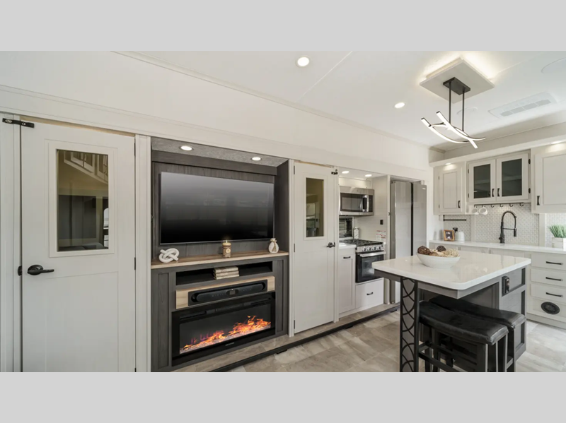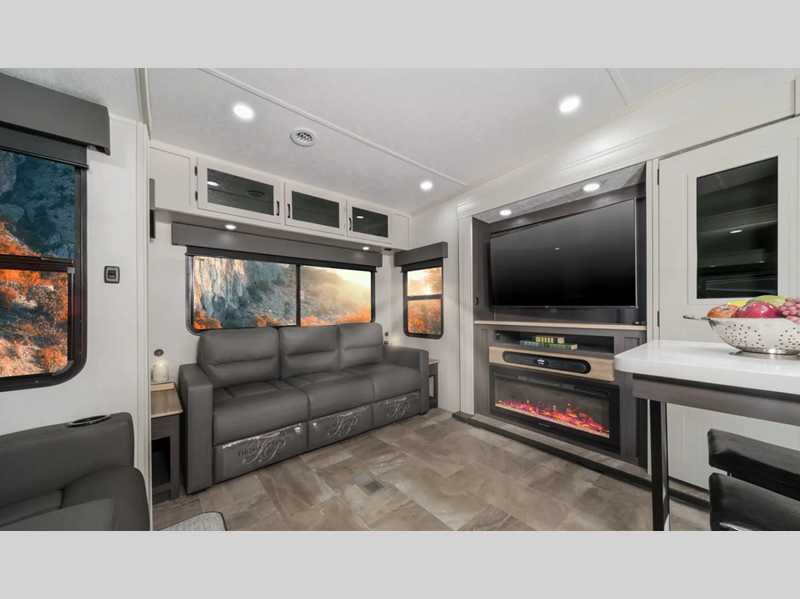 Each exterior includes a Tri-Tex powder coated frame technology for up to 5X more weather resistance and a vacuum bonded 6X double Azdel aluminum cage sidewall system. They have been 0 degree cold tested and 110 degree hot tested in an extreme temperature chamber to prove how well they can withstand intense weather conditions. You'll enjoy many upgraded features, including an extra deep single basin sink, a GE Profile microwave and oven, a new JBL marine grade exterior HD speaker, and the list goes on!