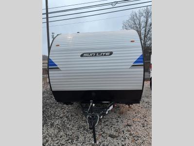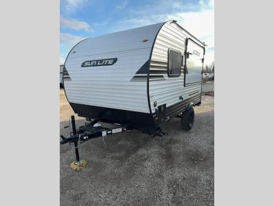 You can trust the build and enjoy your experience with any one of these Sunset Park RV Sun Lite travel trailers or toy haulers! Their aerodynamic profile is not only easy to haul, but also saves on fuel. They are built to withstand years of traveling even though they are lightweight with a diamond plate rock guard, a one piece PVC roof membrane, Dexter Spring-Leaf axles, and tinted safety glass windows. Some comfort standards you are sure to enjoy are the two-burner stove top range with hood, light and fan, plus the refrigerator and microwave, and an outside shower to help keep the dirt outdoors where it belongs.
